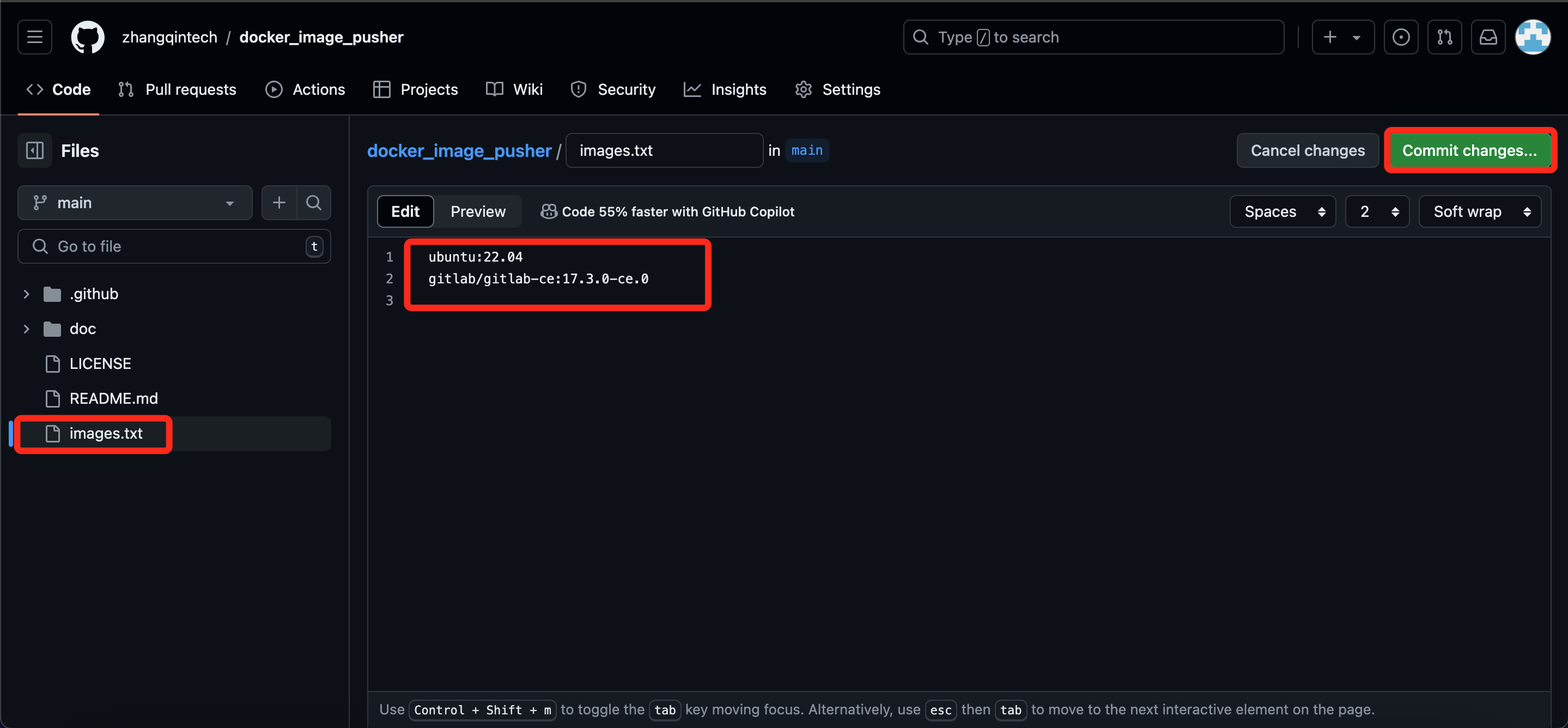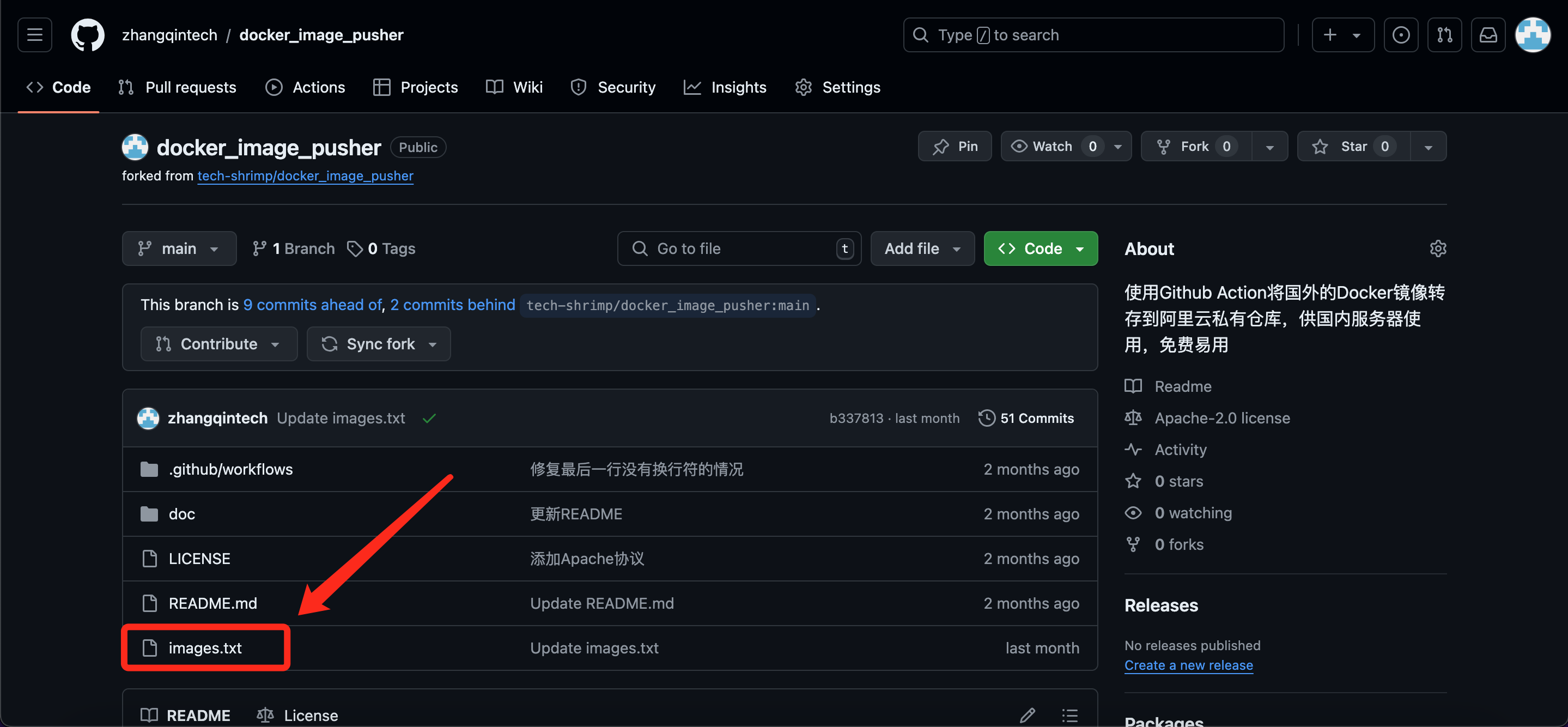 编辑 docker_image_pusher项目的 images.txt 文件,添加想要的镜像 GitHub 即可自动触发 Action。