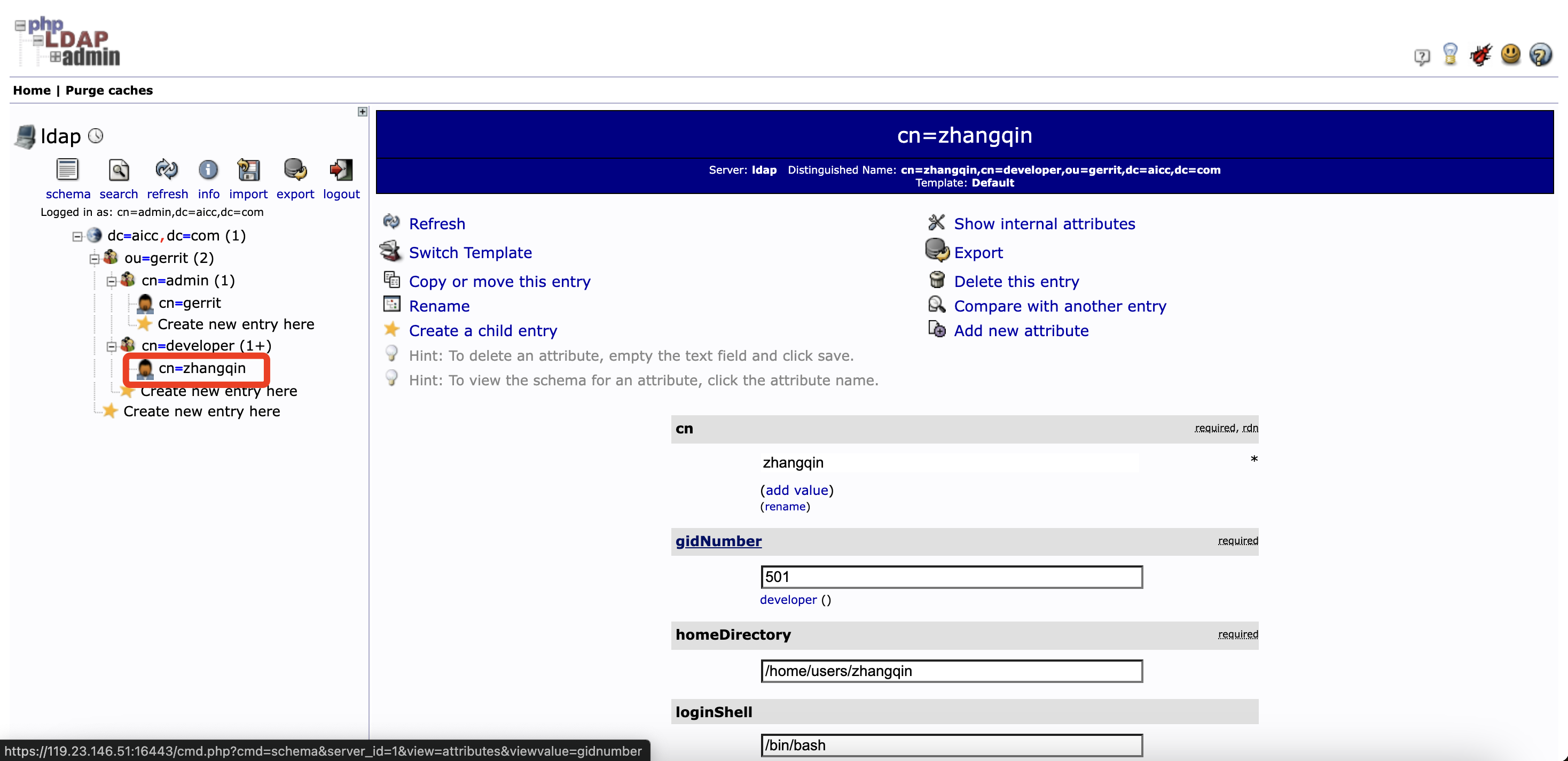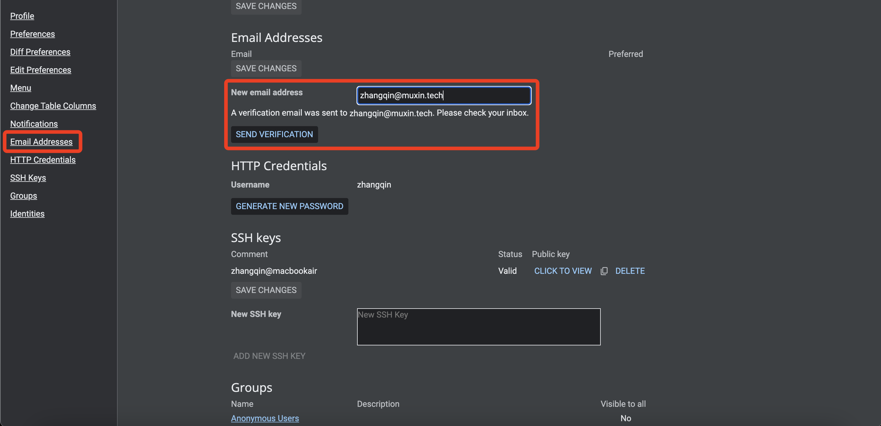 我这里新建了一个用户组developer,在用户组下新建了个人账号zhangqin。