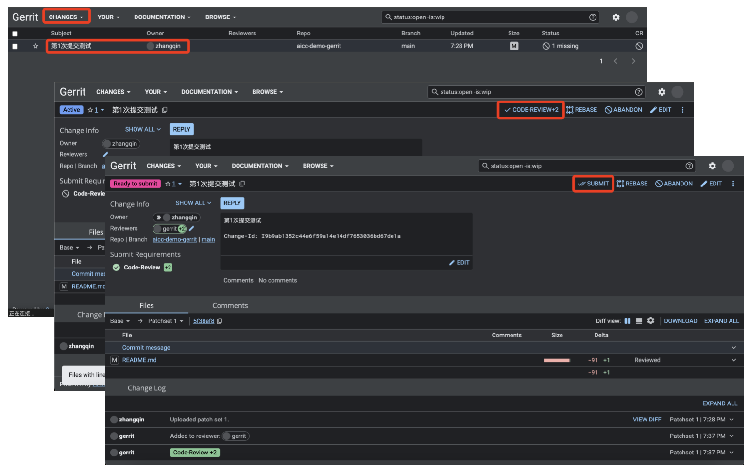remote: http://xx.xx.xx.xx:18018/c/aicc-demo-gerrit/+/1 第1次提交测试 [NEW]