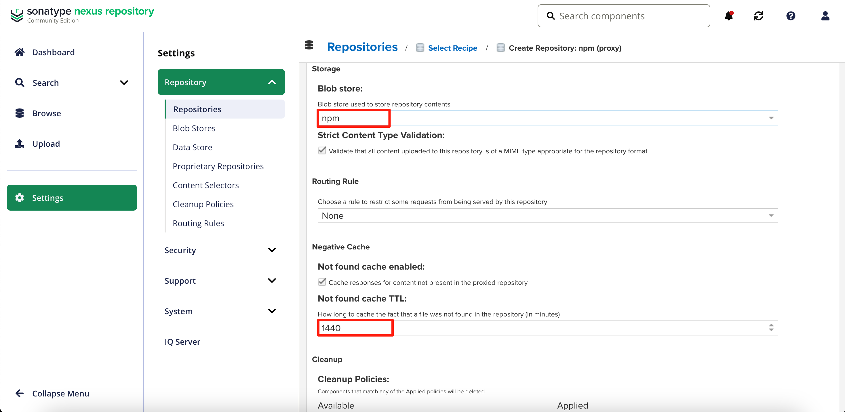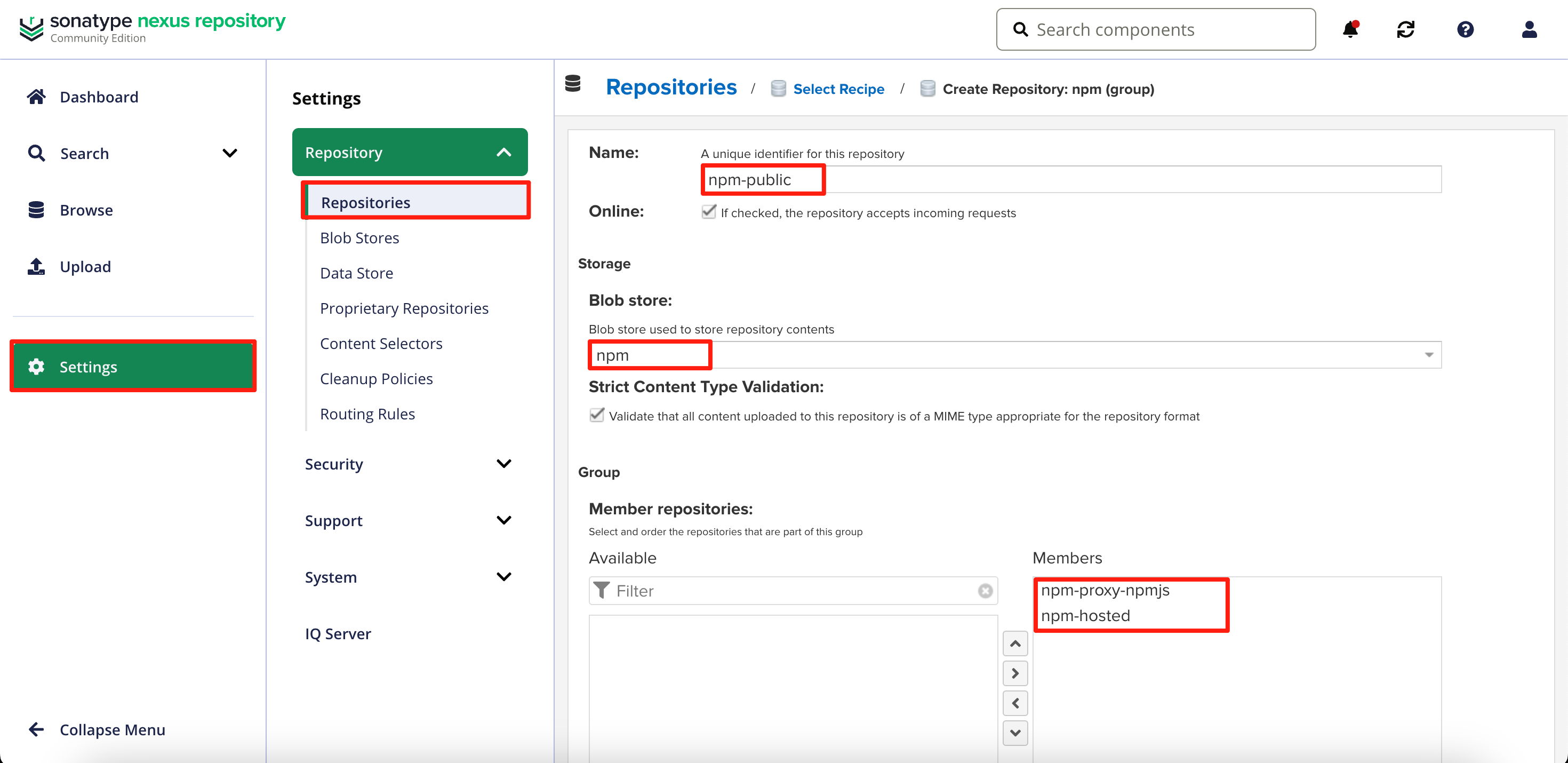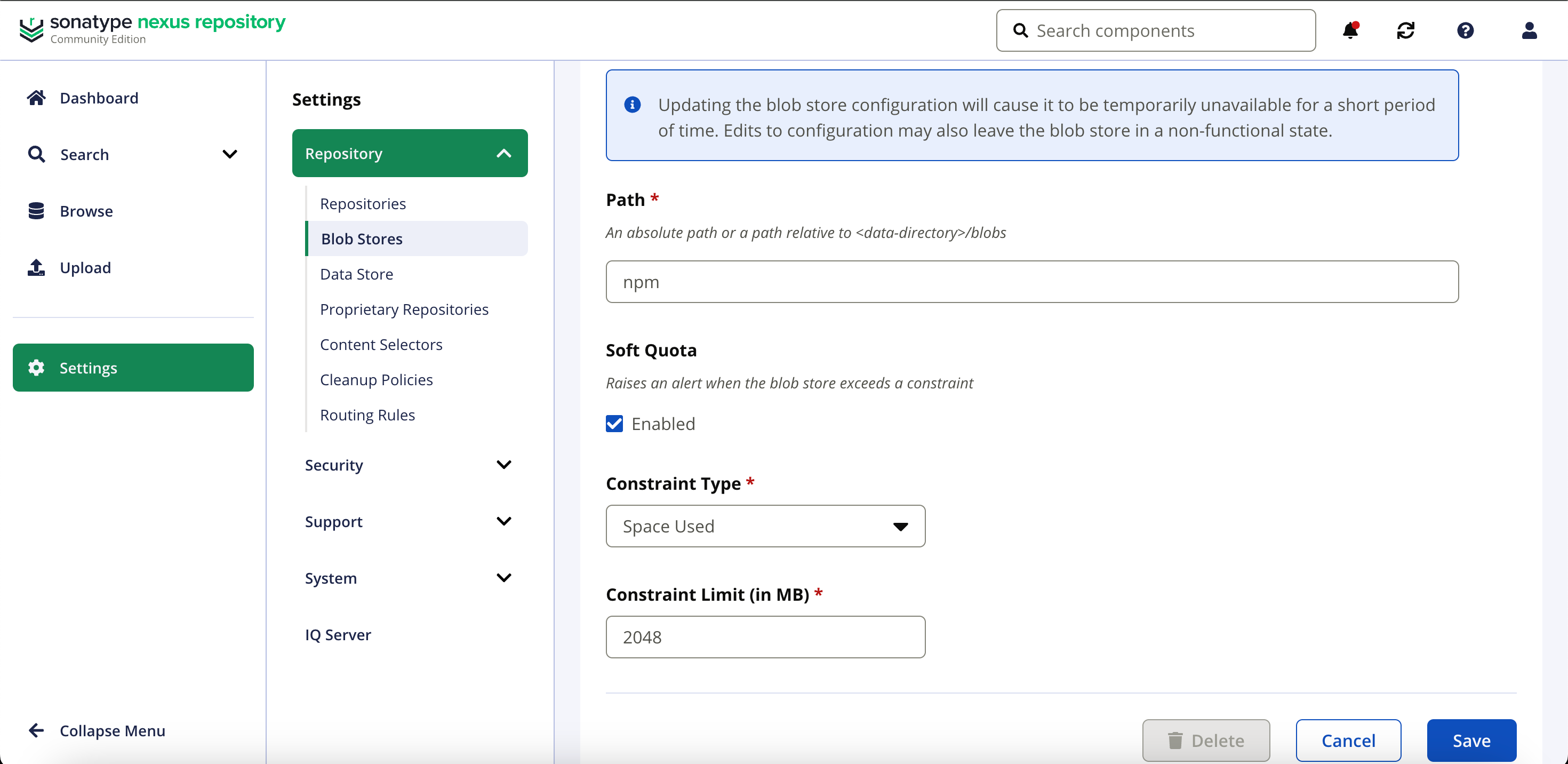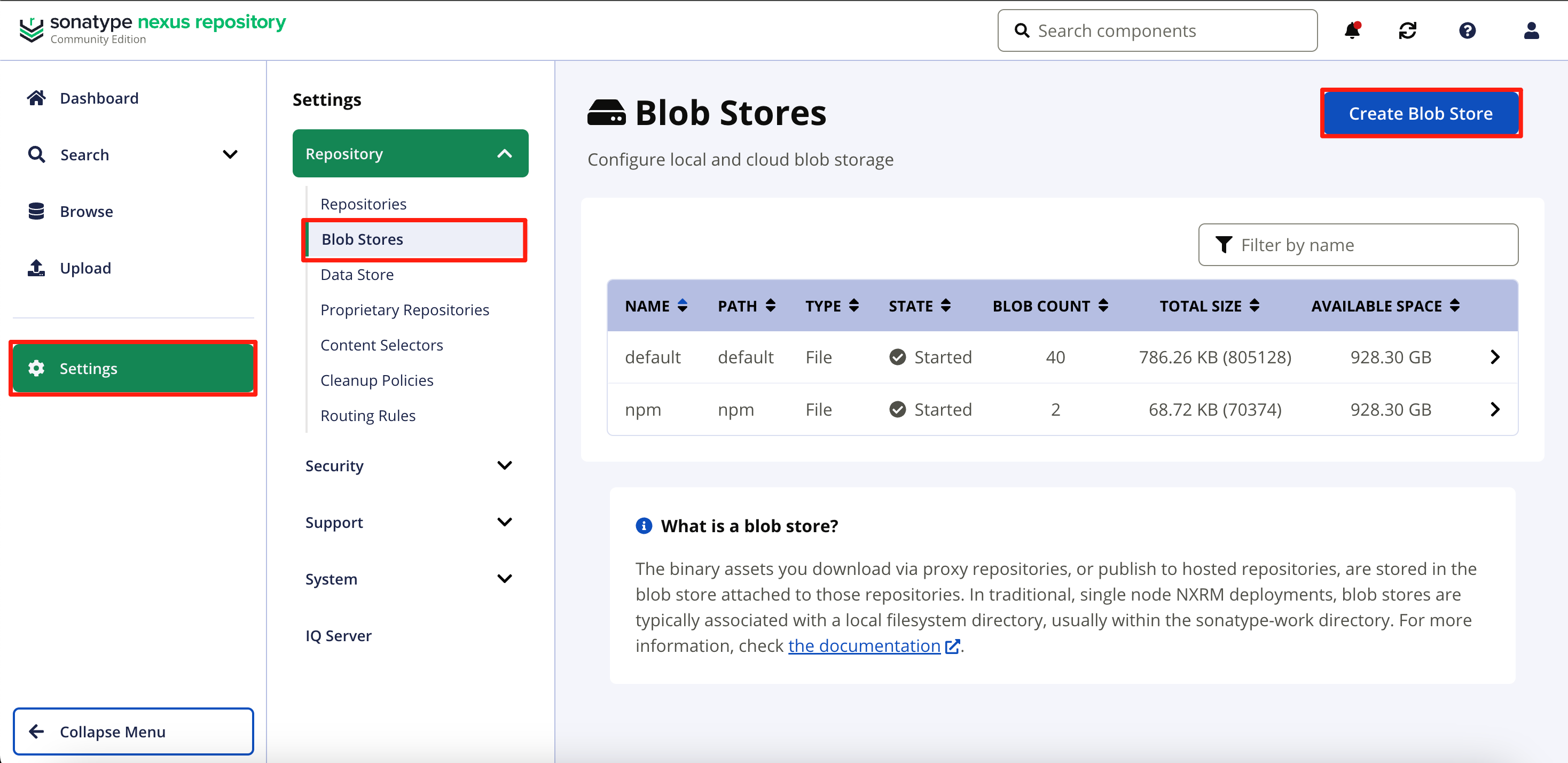 创建npm专属的Blob Store。