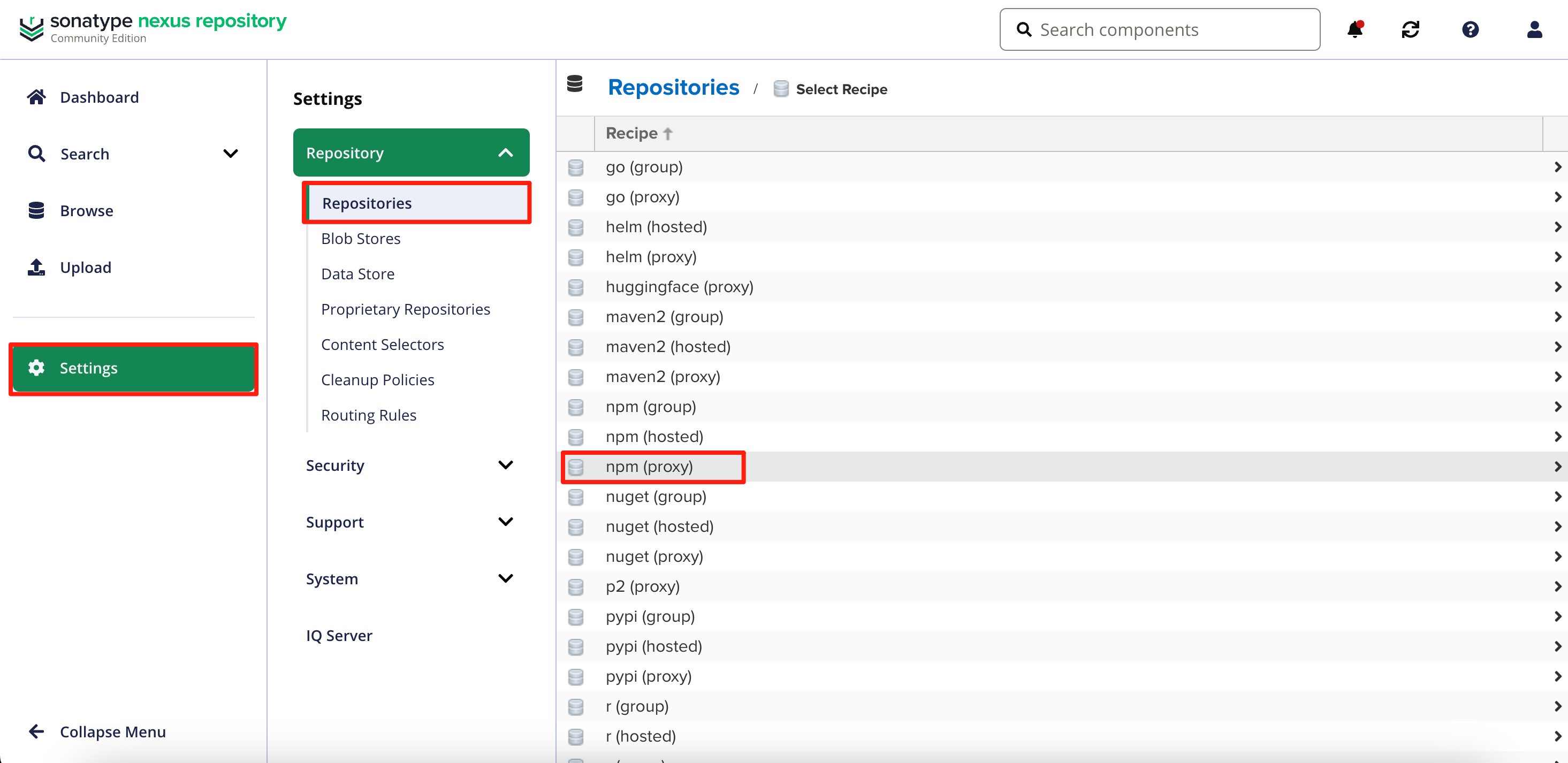 新建Proxy仓库,用于常见开源npm模块拉取。