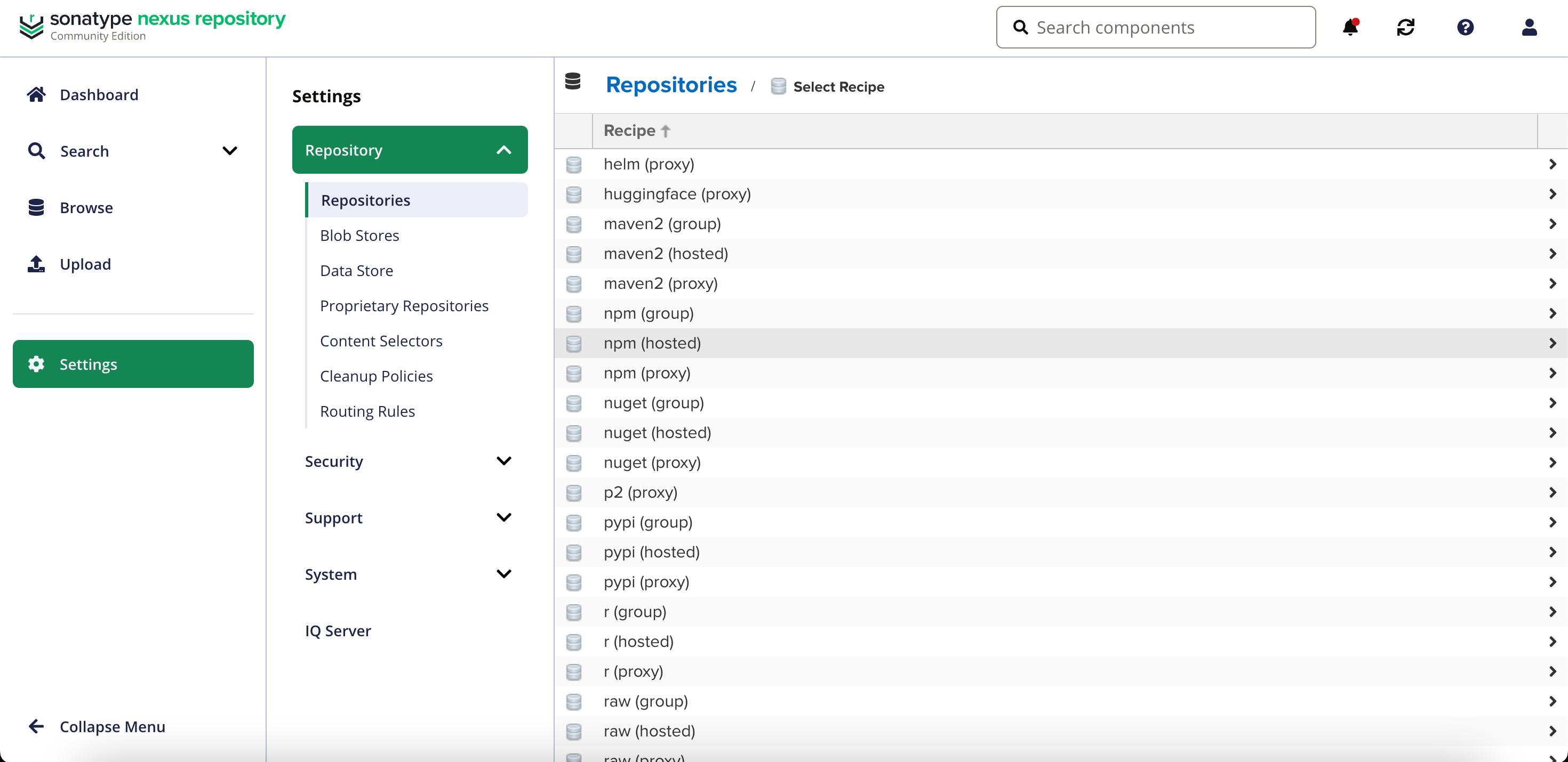 新建Hosted仓库,用于发布个人开发的npm组件。